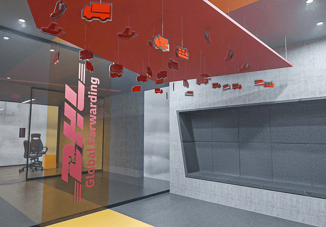 Seamlessly integrated DHL's iconic brand identity with a distinct brutalist aesthetic in its material palette.